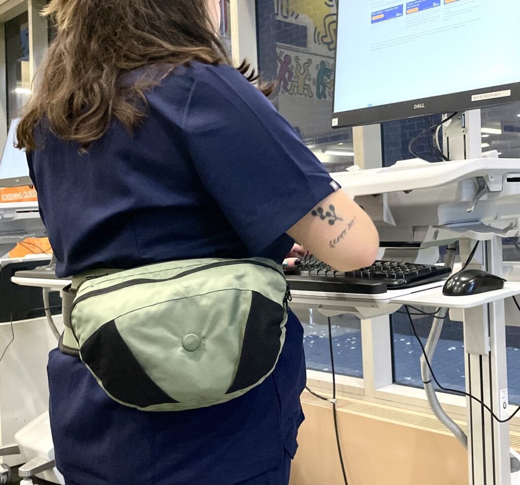 In clinical settings, caregivers often rely on overfilled pockets or ad-hoc storage to keep essential supplies within reach. At the same time, repeated lifting, bending, and twisting place significant stress on the lower back. Existing solutions typically addressed these issues in isolation, either offering storage without ergonomic support or back braces without functional integration into daily work routines. The challenge was to design a single, wearable that could reduce physical strain while improving access to tools without restricting movement or adding complexity during fast-paced clinical work.