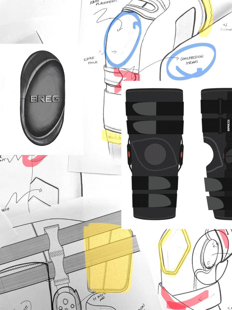 Interwoven Design worked closely with Breg’s internal engineering and manufacturing teams to develop a cohesive, patient-centered brace system. Early concept development focused on understanding user interaction with the brace: how it feels to put on, adjust, and wear throughout a full day of movement. Mood boards and design research established a visual and functional language rooted in anatomy, clarity, and ease of use.
