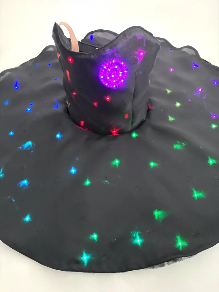 Behind the scenes, electronics were housed discreetly within the skirt structure. The housing protected the components while distributing weight in a way that preserved balance for the dancers. The integration of soft goods, illumination technology, and performance ergonomics was refined through iterative prototyping and collaboration with the ballet’s artistic and technical teams.