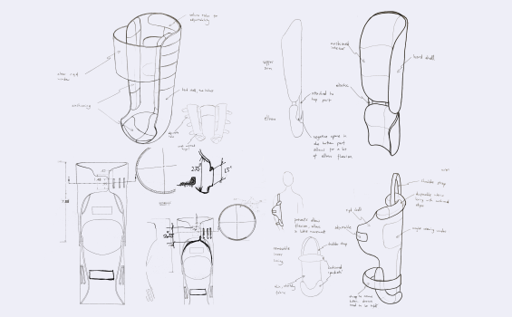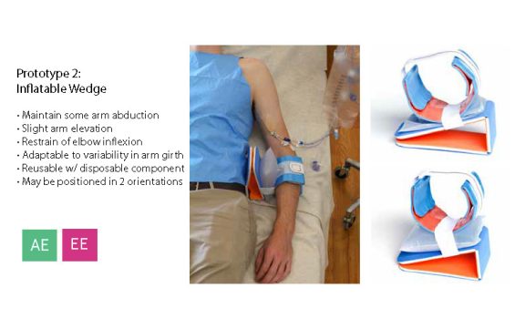 We created eight functional concept prototypes—including inflatable sleeves, rigid cuffs, foam bridges, and angled supports—each mapped to a specific clinical insight such as elbow extension, arm elevation, or compression protection. We selected Baymedix® froth foams as the core material for their softness, moldability, and ability to manage moisture and pressure comfortably against the skin.